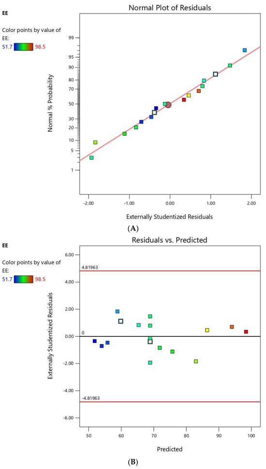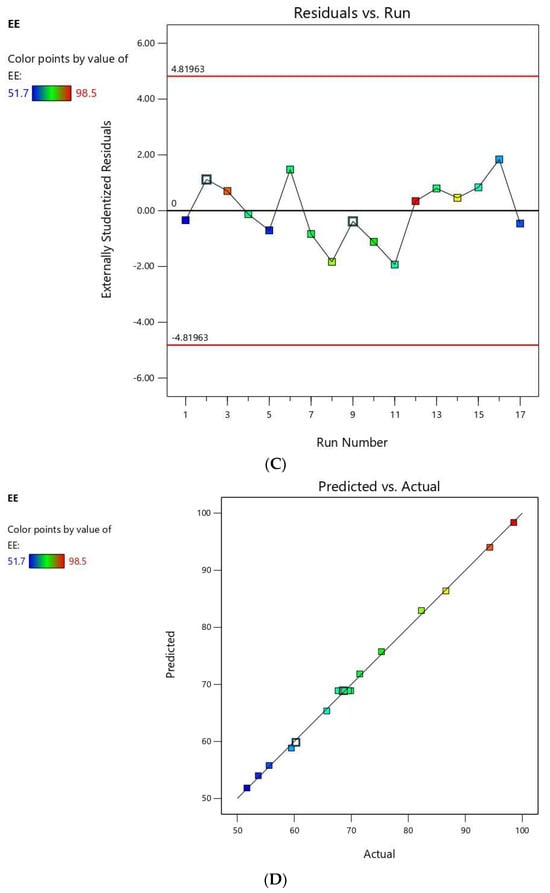 3.1.3. Statistical and Response Analysis for the Effect of Variables on EE% (Y2)
