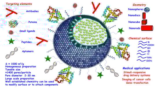 - Rosenholm, J.M.; Mamaeva, V.; Sahlgren, C.; Lindén, M. Nanoparticles in targeted cancer therapy: Mesoporous silica nanoparticles entering preclinical development stage. Nanomedicine 2012, 7, 111–120. [Google Scholar] [CrossRef] [PubMed]