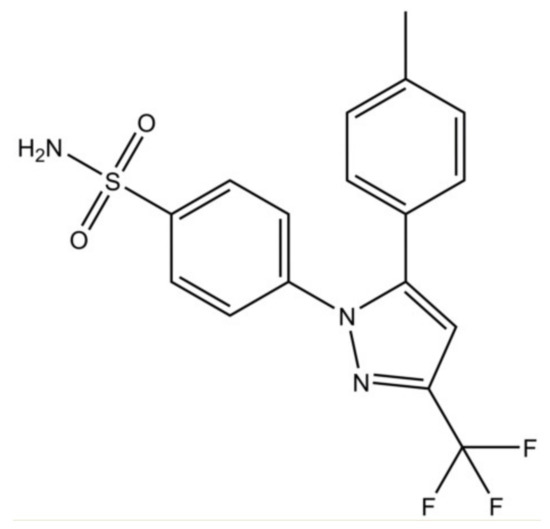 Polyvinyl alcohol (PVA, Parteck MXP®) was kindly donated by Merck (Darmstadt, Germany). HPMCAS LG (hydroxypropylmethylcellulose acetate succinate) was provided by Shin-Etsu Chemical (Tokyo, Japan). Copovidone, Kolliphor P188 and Kolliphor P407 were donated by BASF (Ludwigshafen, Germany). HPC-SSL was obtained from Nisso Chemical Europe (Düsseldorf, Germany) and Eudragit L100-55 was obtained from Evonik (Darmstadt, Germany). Celecoxib (CXB) was obtained from Swapnroop Drugs & Pharmaceuticals (Aurangabad, India) (Figure 1). Lecithin and sodium taurocholate were purchased from Alfa Aesar (Haverhill, MA, USA). FaSSIF-V2 medium was prepared according to Denninger et al. [30], in henceforth will be referred to as FaSSIF.