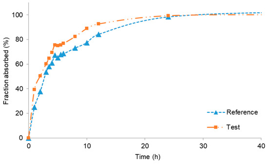 Figure 2 represents the fractions absorbed (actually bioavailable fractions) obtained by the Wagner–Nelson method. The plot is restricted up to 40 h to clearly show the differences on the initial times.