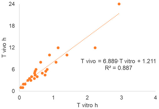 Table 3 in columns 1 to 4 summarizes the calculations to obtain the in vitro times that can be used to construct the Levy plot represented in Figure 4.