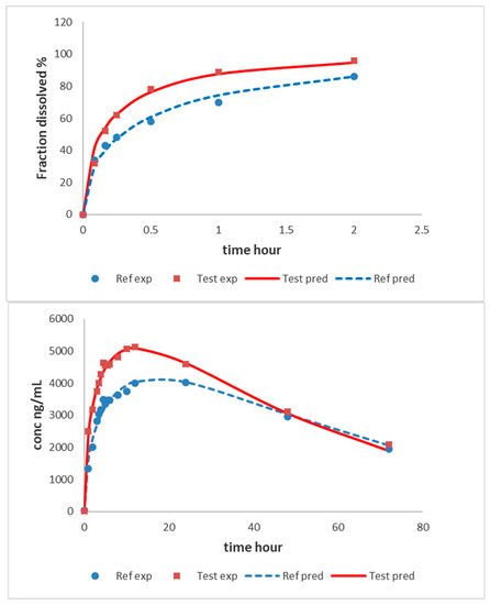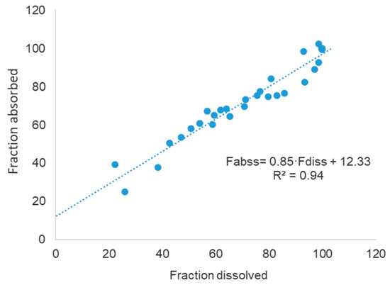 To determine the predictability of the IVIVC correlation, predicted fractions absorbed (y) from the linear IVIVC (using the fractions dissolved (x)) were back-transformed into plasma concentrations using the following equation from Gohel et al. [25].