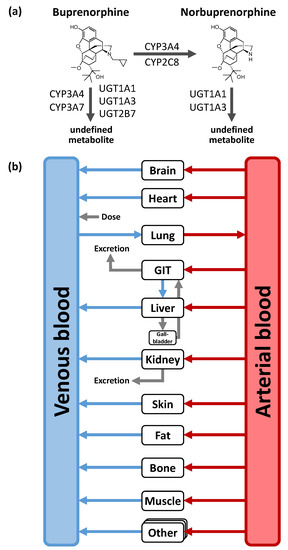 As a consequence, a recent meta-analysis by Vicencio-Rosas and colleagues pointed out the need of further research activities on buprenorphine in pediatric populations with particular focus on pharmacokinetic and pharmacodynamic issues [3]. Among others, their goals should be to allow researchers to develop dosage schemes and minimize the risk of ADR [3]. However, pediatric studies are difficult to conduct and are accompanied by numerous ethical challenges, many of which are unique to pediatrics, especially newborns [11]. Physiologically-based pharmacokinetic (PBPK) modeling in pediatrics has shown to be useful for the optimization of clinical study designs, the prediction of starting doses for children and the assessment of potential drug-drug interactions (DDIs) [12,13,14,15,16].