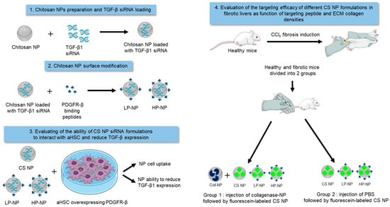 Collagen-binding chitosan nanoaprticles offer possible means for the targting of fibrotic livers. However, collagen-bound particles show limited ability in the interaction with target cells, offering limited intracellular delivery of therapeutic molecules, particlaury large macromolecules, such as siRNA. The modifcation of chitosan nanoparticles with targeting ligands, coupled with collagenase treatment, allows for increased NP uptake by target cells, with the intracellular delivery of therapeutics possibly imporving therapeutic outcomes.