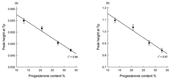 Linear correlation between the peak height at Tp and progesterone payload of microspheres.