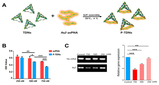 - Zhang, Y.; Ma, W.; Zhu, Y.; Shi, S.; Li, Q.; Mao, C.; Zhao, D.; Zhan, Y.; Shi, J.; Li, W.; et al. Inhibiting Methicillin-Resistant Staphylococcus aureus by Tetrahedral DNA Nanostructure-Enabled Antisense Peptide Nucleic Acid Delivery. Nano Lett. 2018, 18, 5652–5659. [Google Scholar] [CrossRef]