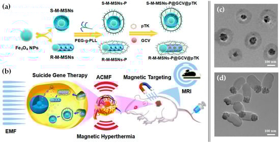 - Wang, Z.; Chang, Z.; Lu, M.; Shao, D.; Yue, J.; Yang, D.; Zheng, X.; Li, M.; He, K.; Zhang, M.; et al. Shape-controlled magnetic mesoporous silica nanoparticles for magnetically-mediated suicide gene therapy of hepatocellular carcinoma. Biomaterials 2018, 154, 147–157. [Google Scholar] [CrossRef] [PubMed]