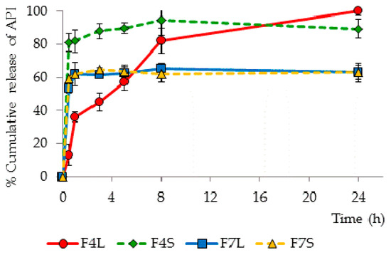 9]. This fraction was responsible for the fast drug release phase and the phase of prolonged release related to the fraction of the API incorporated in the lipid matrix [