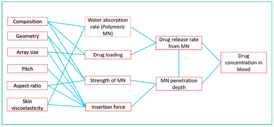Relationship between skin and MN design parameters and therapeutic efficacy.