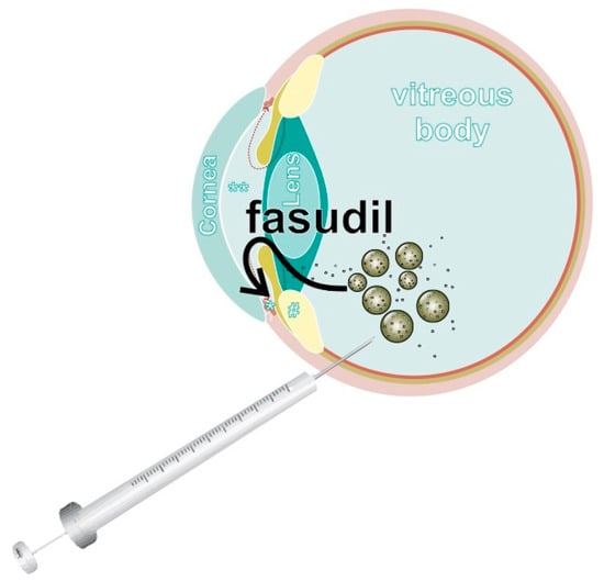 ROCK inhibitors are considered as promising drug class for glaucoma therapy because they allow for causative treatment. To date, only eye drop formulations of ROCK inhibitors are available on the market. To deal with the issues associated with these formulations, including conjunctival hyperemia, subconjunctival hemorrhage and low intraocular bioavailability, we propose a depot formulation for intravitreal application. We incorporated the ROCK inhibitor fasudil into PLGA microspheres. PLGA is an advantageous material choice because it is approved by the Food and Drug Administration and the European Medicines Agency for intravitreal application [] and it is commonly used to fabricate devices for controlled and sustained delivery of small and large drug molecules []. In contrast to non-biodegradable delivery devices for glaucoma therapy like the implant iDose made from titanium, which must be removed after the travoprost-loaded reservoir is empty, its biodegradability and high biocompatibility makes PLGA favorable for intraocular application.