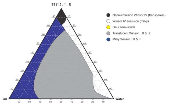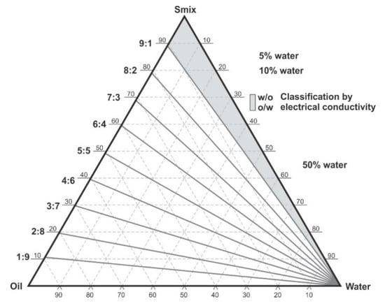 2.3.1. Pseudo-Ternary Phase Diagrams and Emulsion Classification