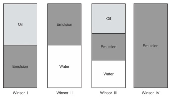 - Winsor, P.A. Hydrotropy, solubilisation and related emulsification processes. Part I. Trans. Faraday Soc. 1947, 44, 376–398. [Google Scholar] [CrossRef]