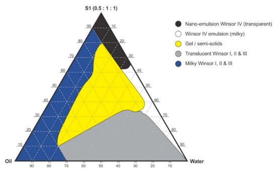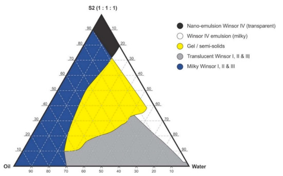 - Syed, H.K.; Peh, K.K. Identification of phases of various oil, surfactant/co-surfactants and water system by ternary phase diagram. Acta Pol. Pharm. Drug Res. 2014, 71, 301–309. [Google Scholar]