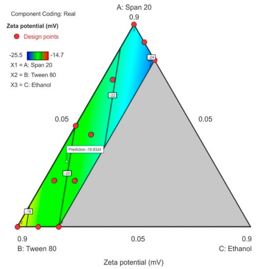 Zeta potential = −23.10A – 17.08B − 29.48C