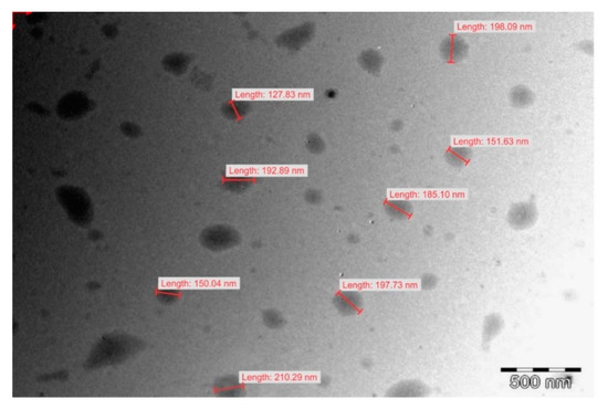 Transmission electron micrograph of nanoemulsion F5. The images for F1, F2, F3 and F4 are reported in the Supplementary Materials.