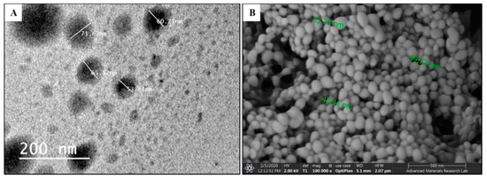 For SEM studies, one drop of the re-dispersed sample was spread on a clean slide cover and left to dry under vacuum. The dried sample was then mounted on carbon tape and sputter-coated using a gold sputter module in a high vacuum. The gold-coated samples were scanned, and photomicrographs were taken at an acceleration voltage of 3 kV using a Thermo Scientific Apreo SEM (FEI Company, Hillsboro, OR, USA).