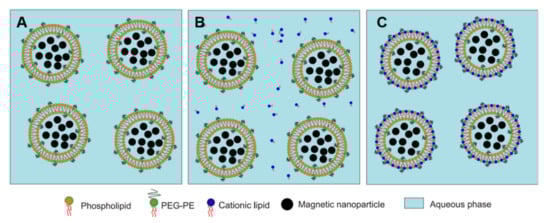 - Zheng, X.; Lu, J.; Deng, L.; Xiong, Y.; Chen, J. Preparation and characterization of magnetic cationic liposome in gene delivery. Int. J. Pharm. 2009, 366, 211–217. [Google Scholar] [CrossRef] [PubMed]