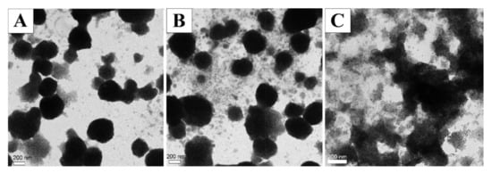 This method was developed from the study of Jiang et al., in which they used lipid-like molecules (lipidoid) to coat the surface of hydrophobic MNPs. They found that one of the most important factors that can affect the quality and transfection efficiency of lipidoid-coated MNPs was the sonication time. After 6 h of sonication, they obtained clusters of about 300 nm. A longer sonication time led to much smaller particle size down to about 50 nm after 8 h [15]. To understand the role of sonication time in MCLs formation and characterization, in our study, three different samples with various sonication times of 1 h, 3 h, and 6 h were prepared. From Table 3, we found that the longer the sonication time was, the smaller the size and PDI of the liposome was. Small liposomes of about 200 nm were obtained after 3 h of sonication (Figure 8). When we continued sonicating for 3 more hours, the liposome size decreased, but not much. So, we chose a sonication time of 3 h for further studies.
