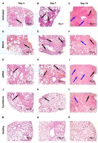 Figure 3B) in IVA-infected BALB/c mice upon treatment, in this experiment histopathological analysis was carried out on days 3, 7 and 14 p.i.