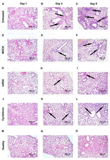Figure 3B). For a more detailed assessment of the antiviral effect of isRNA in mice with different responsiveness to isRNA (BALB/c and C57Bl/6 mice), the pathomorphological features of the infectious process were studied.