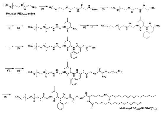 2.2. Synthesis PEG-GLFG-K(C16)2 (PEG-GLFG)
