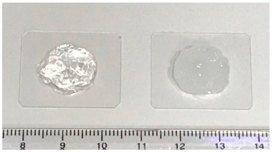 Photographic image of the blank carbomer (left) and phenethyl isothiocyanate (PEITC) carbomer (right) gels.