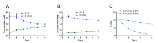 3.1. Comparison of 5FUR Prodrug Stability and In Vitro Toxicity