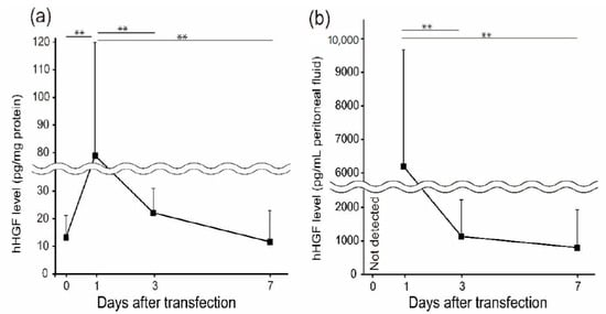 3.1. Transgene Expression Periods of hHGF in Peritoneal Fibrosis Mice