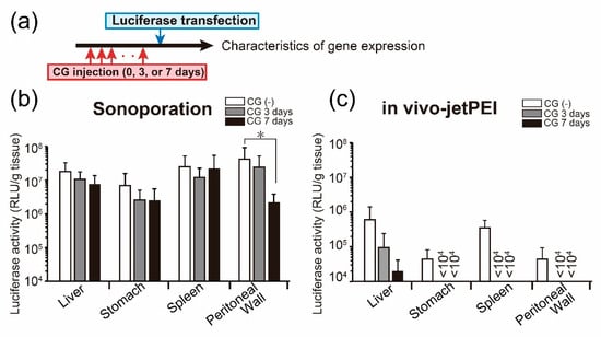 - Nishimura, K.; Yonezawa, K.; Fumoto, S.; Miura, Y.; Hagimori, M.; Nishida, K.; Kawakami, S. Application of Direct Sonoporation from a Defined Surface Area of the Peritoneum: Evaluation of Transfection Characteristics in Mice. Pharmaceutics 2019, 11, 244. [Google Scholar] [CrossRef]