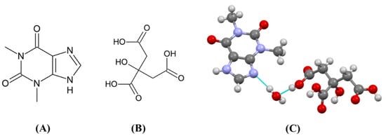 Chemical structures of (A) theophylline (THP), (B) citric acid (CIT), (C) THPCIT cocrystal hydrate.