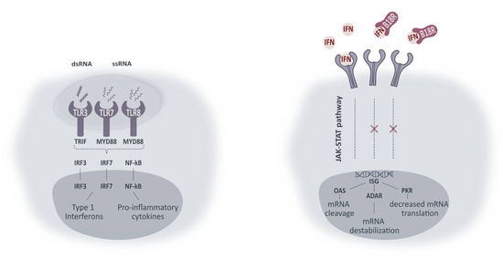 - Melissa Swiecki, M.C. Type I interferons: Diversity of sources, production pathways and effects on immune responses. Curr. Opin. Virol. 2013, 1, 463–475. [Google Scholar] [CrossRef] [PubMed]