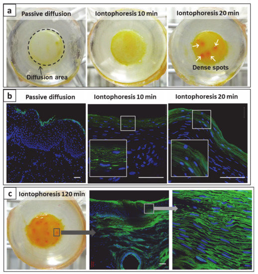 - Dubey, S.; Kalia, Y. Understanding the poor iontophoretic transport of lysozyme across the skin: When high charge and high electrophoretic mobility are not enough. J. Control. Release 2014, 183, 35–42. [Google Scholar] [CrossRef] [PubMed]