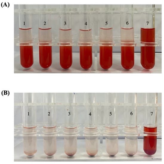 Hemolysis result of RBCs treated with RPTR-701Ns for; (A) 3 h and (B) 24 h.