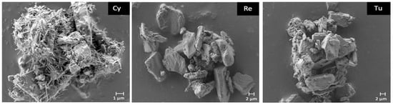 Scanning electron microscopy images of NCE-B blends obtained with Cyclomix high shear impact mixer (Cy), Resodyn Acoustic Mixer (Re) and Turbula (Tu) after aerosolisation (magnification ×20 K). Particles were retrieved in the respirable dose collector of the fast screening impactor.