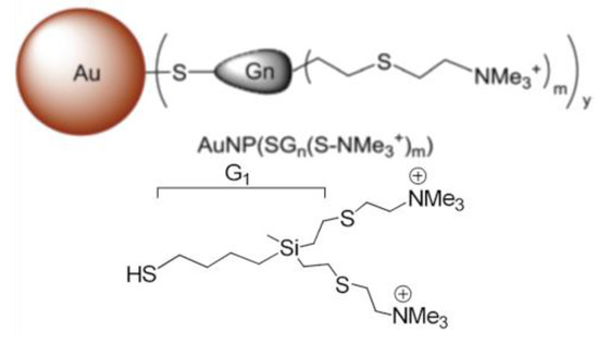 Synthesis and characteristics of dendronized gold nanoparticles with cationic carbosilane dendrons (Figure 1, Table 2) have previously been described [26].