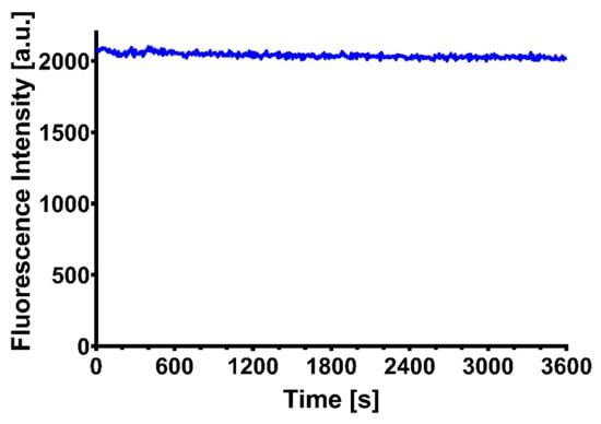The fluorescence intensity of CQDs was measured for 1 h to evaluate their stability, using a 360 nm excitation wavelength. No significant decrease of fluorescence intensity was detected, as can be seen in Figure 4.