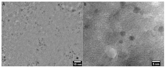 TEM was used to estimate the size, morphology, and dispersity of the as-synthesized CQDs. The nanoparticles were monodispersed, had a spherical morphology and a uniform size, ranging between 1 and 3 nm (Figure 10). No noticeable aggregates were found throughout the sample.
