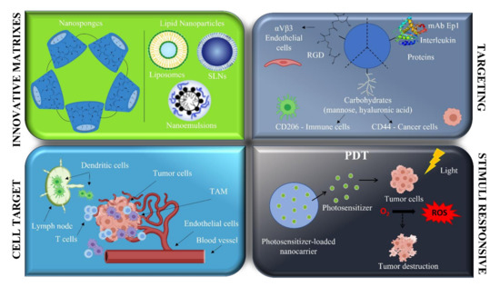 In this context, the targeting of tumor tissue by nanomedicines is a promising approach. Indeed, nanocarriers’ unique features (such as reduced size, variable shape, high surface area-to-volume ratio, favorable drug release profile and targeting features) promote their preferential accumulation in tumor tissues, where they can deliver multiple therapeutic agents, not only to enhance their therapeutic effect on a synergistic or additive basis, but also to overcome the acquired resistance to single chemotherapeutic drugs. Indeed, among the large number of nanomedicines in the clinical stage of development, very few are intended for melanoma therapy. Nevertheless, at the preclinical level, many nano-sized formulations showed efficacy in animal models [].