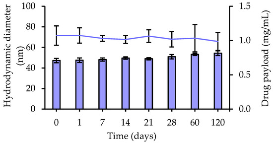 The stability of tegaserod-loaded nanoemulsions was investigated over a storage period of 4 months at 4 °C. The formulations were stocked undiluted. The size distribution, zeta potential and drug payload were evaluated at regular intervals (1, 7, 14, 21, 28, 60 and 120 days).