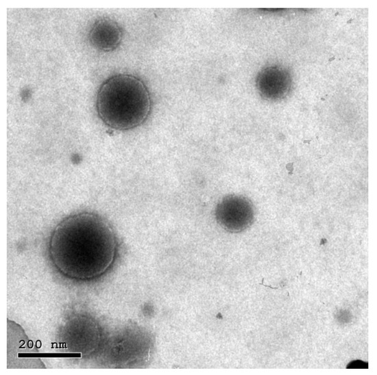 TEM micrograph of representative resveratrol-loaded bilosomes (B9) showing scattered perfect spherical particles with no aggregations.
