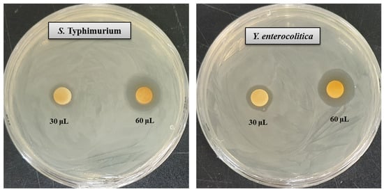 | Yersinia enterocolitica (ATCC 9610)  | 13.5 ± 0.7 | 20.4 ± 0.8 |
