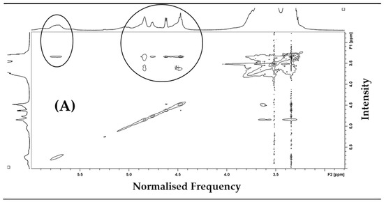 2.6. Nuclear Magnetic Resonance (1H and NOESY NMR) Measurements