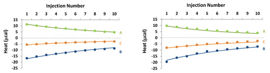 - Wiseman, T.; Williston, S.; Brandts, J.; Lin, L.-N. Rapid Measurement of Binding Constants and Heats of Binding Using a New Titration Calorimeter. Anal. Biochem. 1988, 179, 131–137. [Google Scholar] [CrossRef]