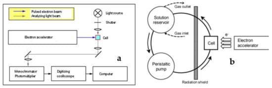 - Von Sonntag, C.; Schuchmann, H.-P. [1] Pulse radiolysis. Methods Enzymol. 1994, 233, 3–20. [Google Scholar] [CrossRef]