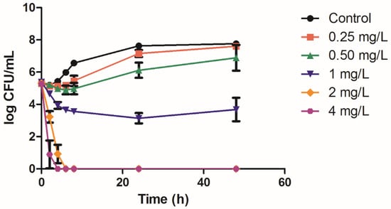 - Nielsen, E.I.; Viberg, A.; Lowdin, E.; Cars, O.; Karlsson, M.O.; Sandstrom, M. Semimechanistic pharmacokinet-ic/pharmacodynamic model for assessment of activity of antibacterial agents from time-kill curve experiments. Antimicrob. Agents Chemother. 2007, 51, 128–136. [Google Scholar] [CrossRef]