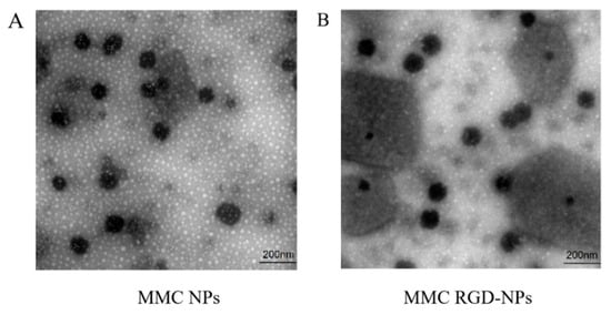 TEM image of MMC NPs (A) and MMC RGD-NPs (B).