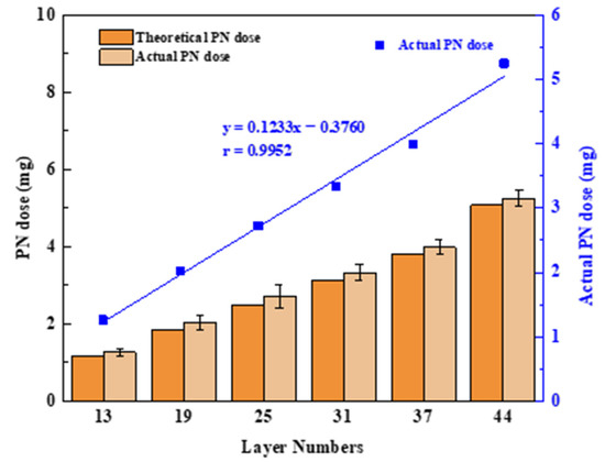 Diagram of the number of printing layers and PN doses; values are expressed as the mean ± SD, n = 3.