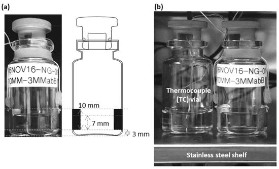 - Scutella, B.; Passot, S.; Bourles, E.; Fonseca, F.; Trelea, I.C. How Vial Geometry Variability Influences Heat Transfer and Product Temperature during Freeze-Drying. J. Pharm. Sci. 2017, 106, 770–778. [Google Scholar] [CrossRef]