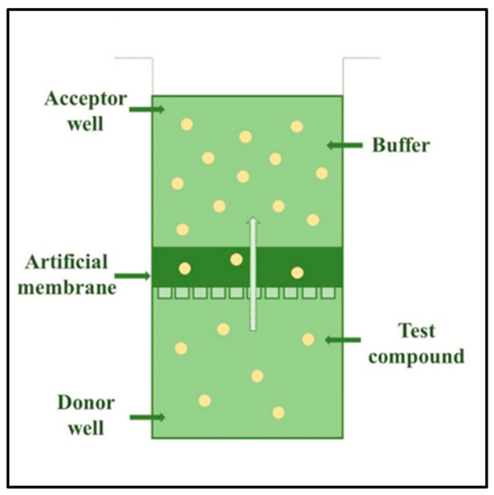 The structure of one-well of a 96-well plate of a parallel artificial membrane permeability assay (PAMPA) system.