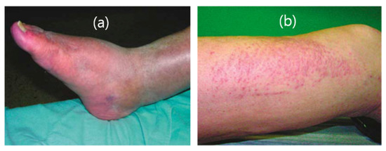 Clinical pictures of the legs of two patients with NSF for (a) about three years and (b) four weeks. Adapted from [99]. Copyright 2007 International Society of Nephrology.